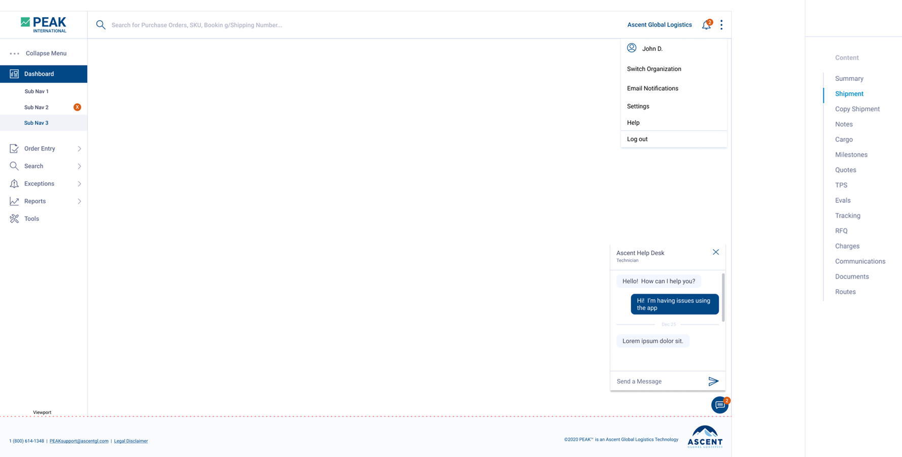 Ascent Global Logistics operated three distinct business outlets—On-Demand, Forwarding, and Brokerage & Managed Transportation—as silos. Each vertical functioned as a separate product used by different business personas, resulting in a fragmented user experience. Internally, there was no unified design system, and the existing branding was limited and not fully "flushed out" for digital products. This lack of standardization led to high design debt, inconsistent interfaces, and a disjointed brand identity that struggled to scale with the business.