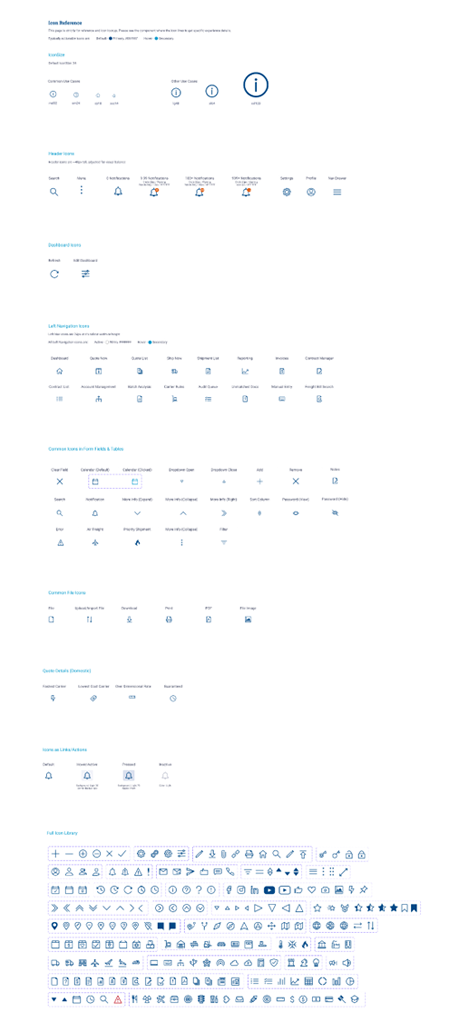 Designed a comprehensive, custom icon library tailored to the logistics sector. By creating proprietary symbols for niche business needs, I eliminated the ambiguity of generic icon sets, ensuring that users in Forwarding, On-Demand, and Brokerage could identify key actions and statuses at a glance.
